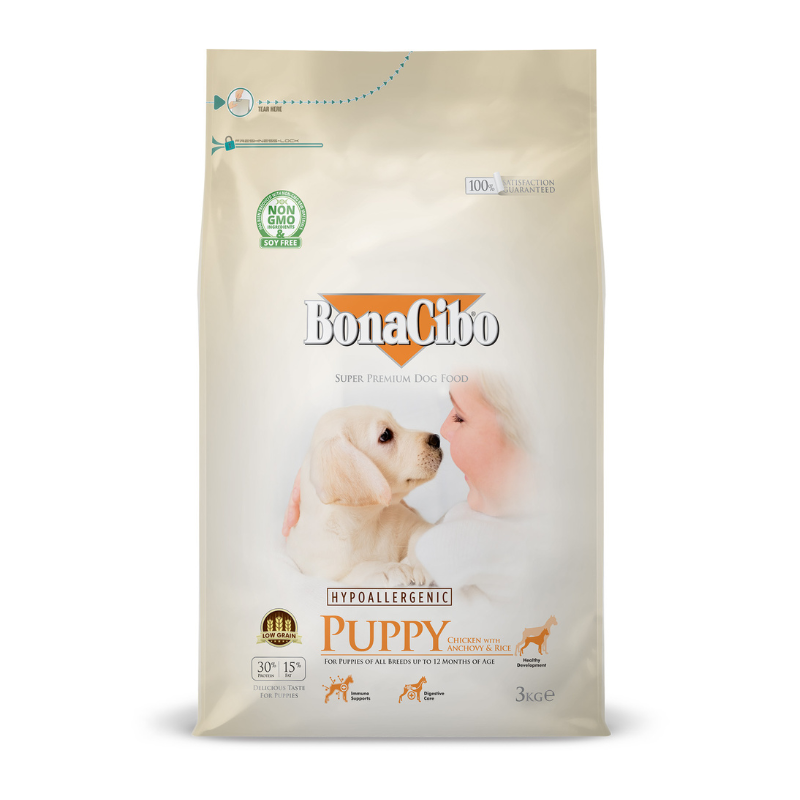 Give your puppy the best start with BonaCibo Puppy Food – Chicken with Anchovy & Rice. Packed with high-quality proteins, essential vitamins, and minerals, this balanced recipe supports your puppy’s growth and development. A perfect blend of chicken, anchovy, and rice for optimal health and digestion. Shop now at Pet Zone for fast delivery and great deals!