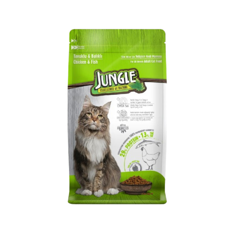 Jungle Adult Dry Cat Food Chicken and Fish 500g – A Balanced, Delicious Diet for Adult Cats